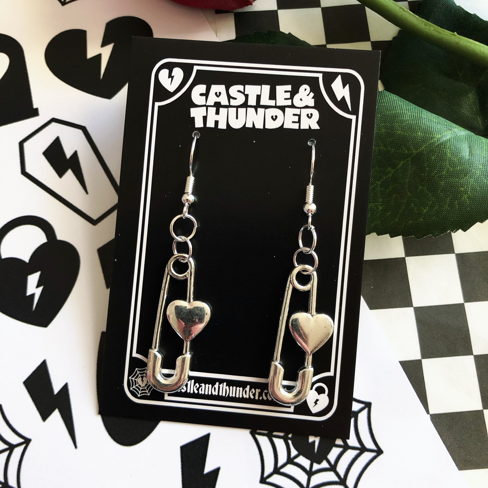 DOMINIC safety pin earrings.