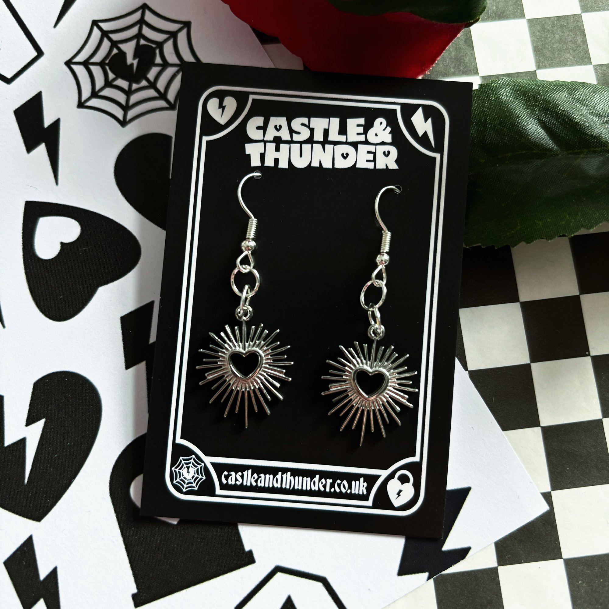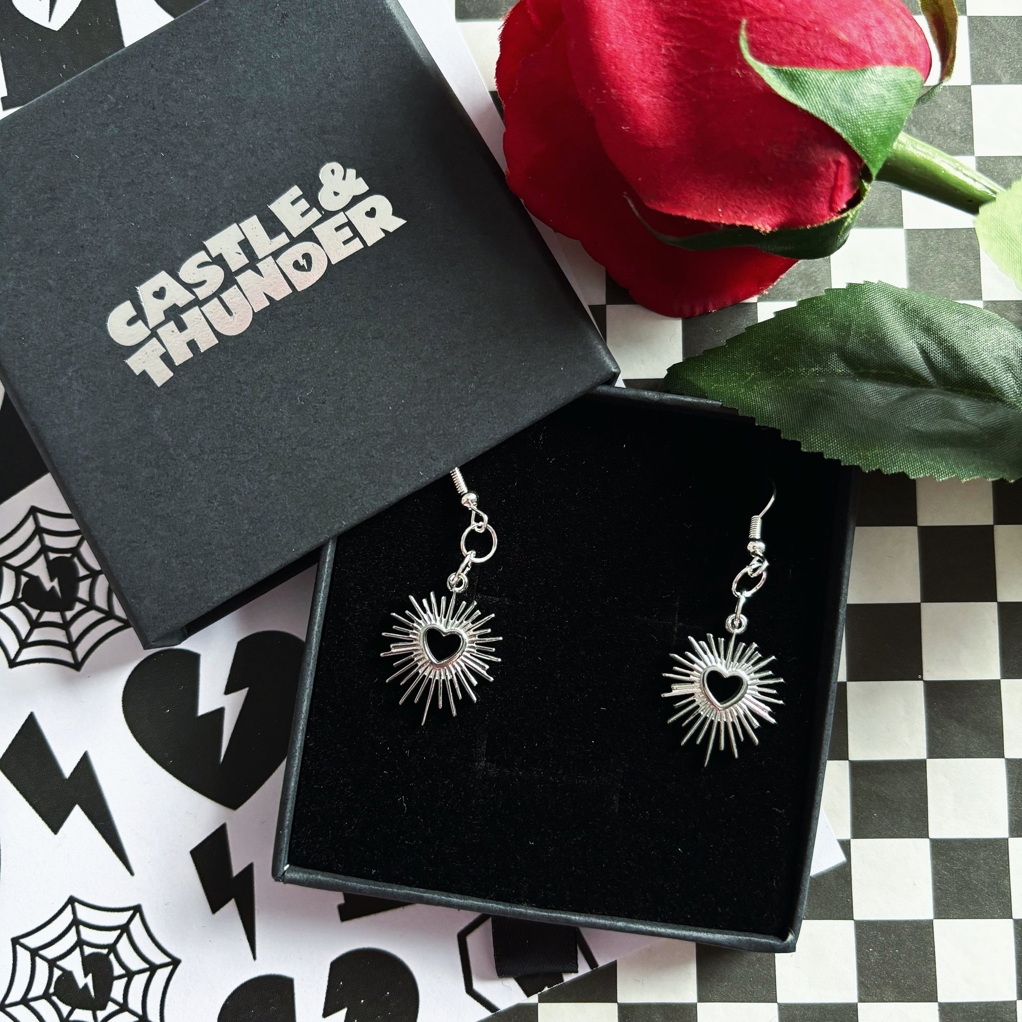 LIZZIE heart burst earrings.